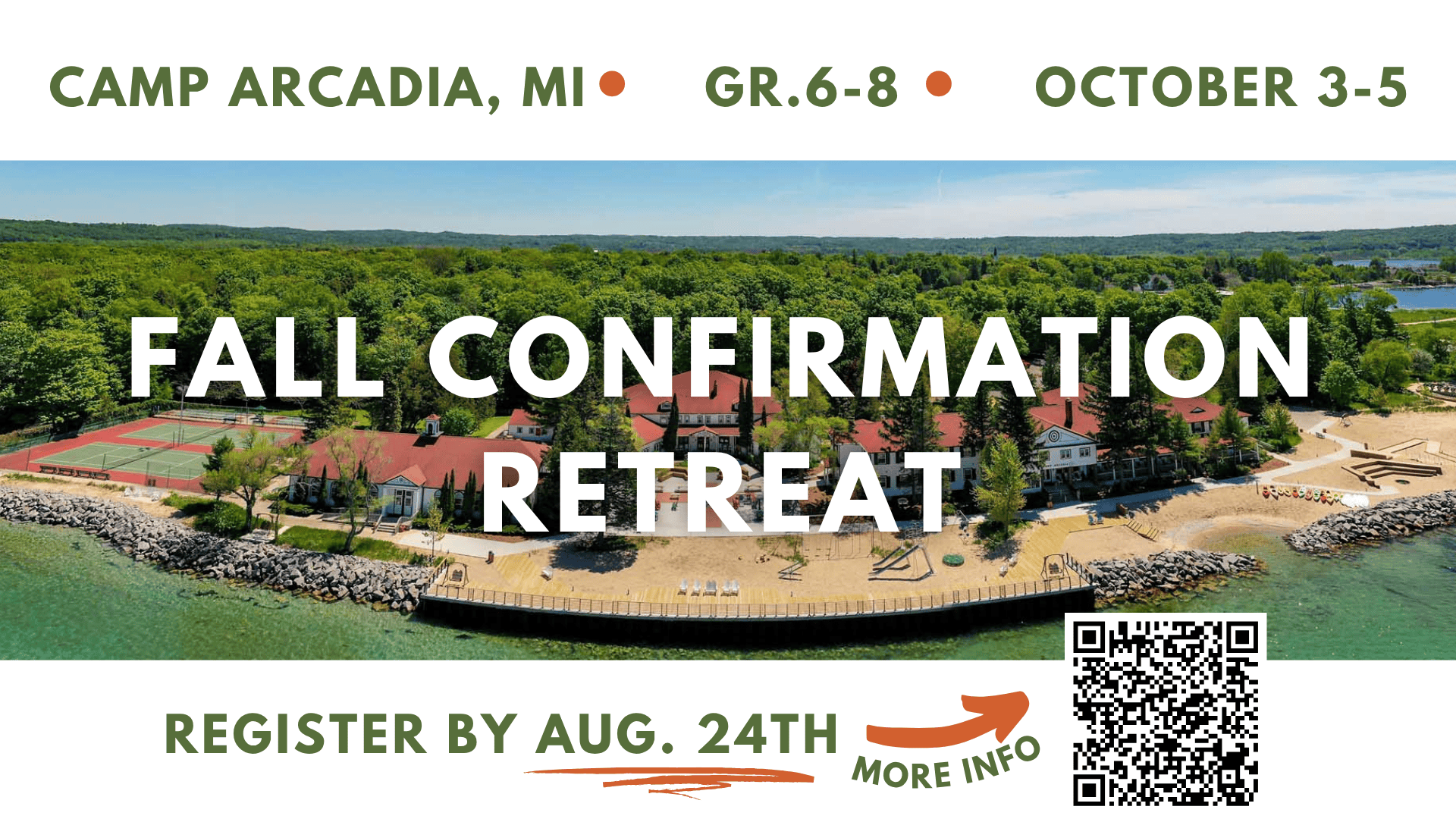 Students grades 6-8th grade will be heading to Camp Arcadia for the Fall Confirmation retreat.